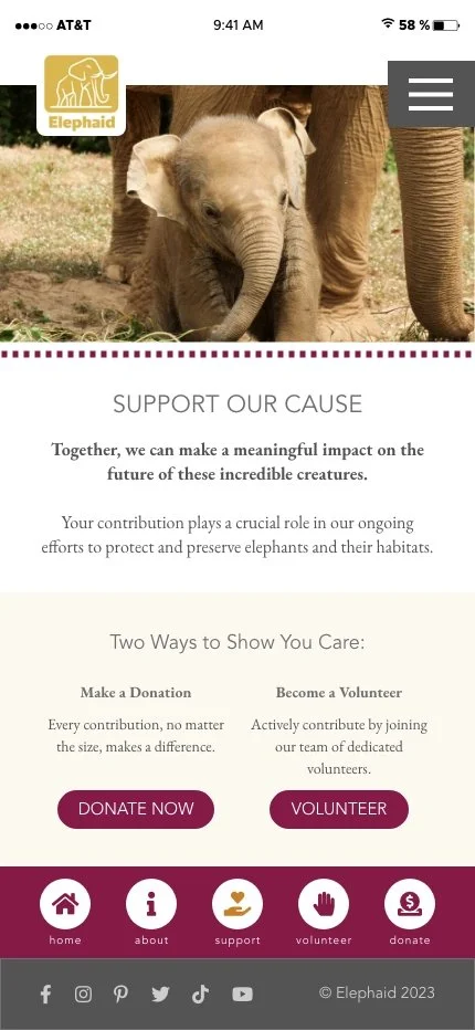The Elephaid Foundation was looking to optimize their mobile app to improve the donation and volunteering processes for their target markets. Here, I created a high-fidelity prototype with the suggested design and functionality updates to streamline those experiences for their respective audiences.